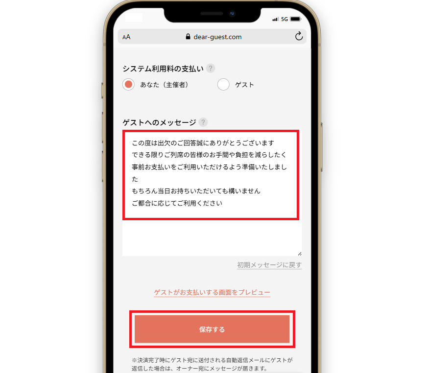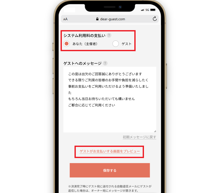 ※ゲストがお支払いする画面をプレビューから確認いただけます。