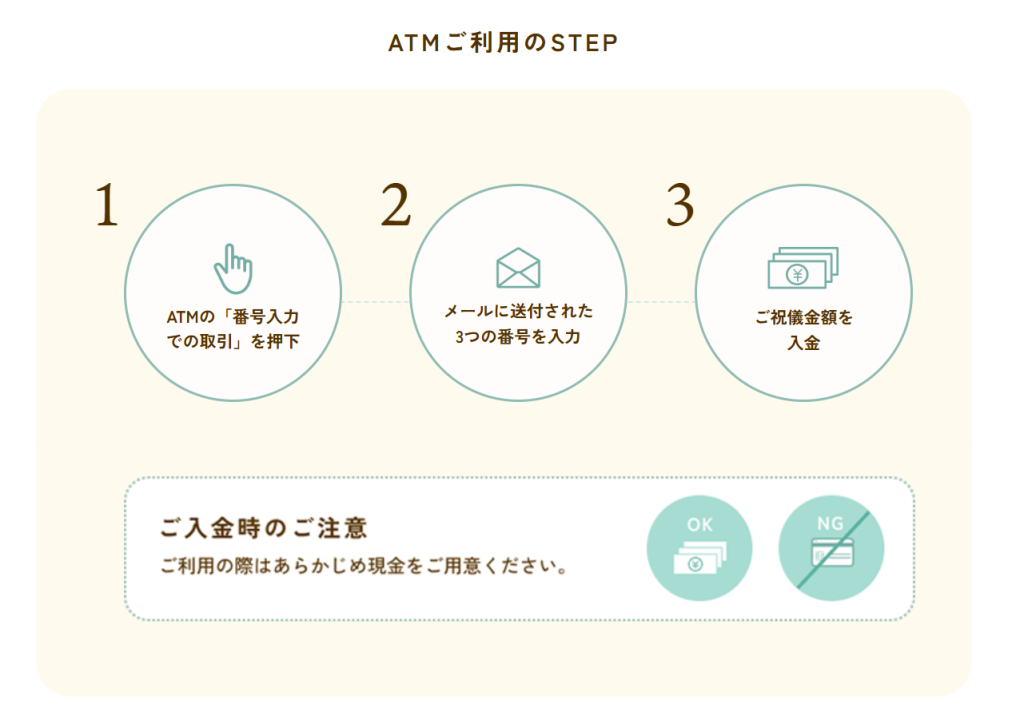 ご祝儀・会費の事前支払いで、「つつむと(セブン銀行ATM送金)」を選択された場合、